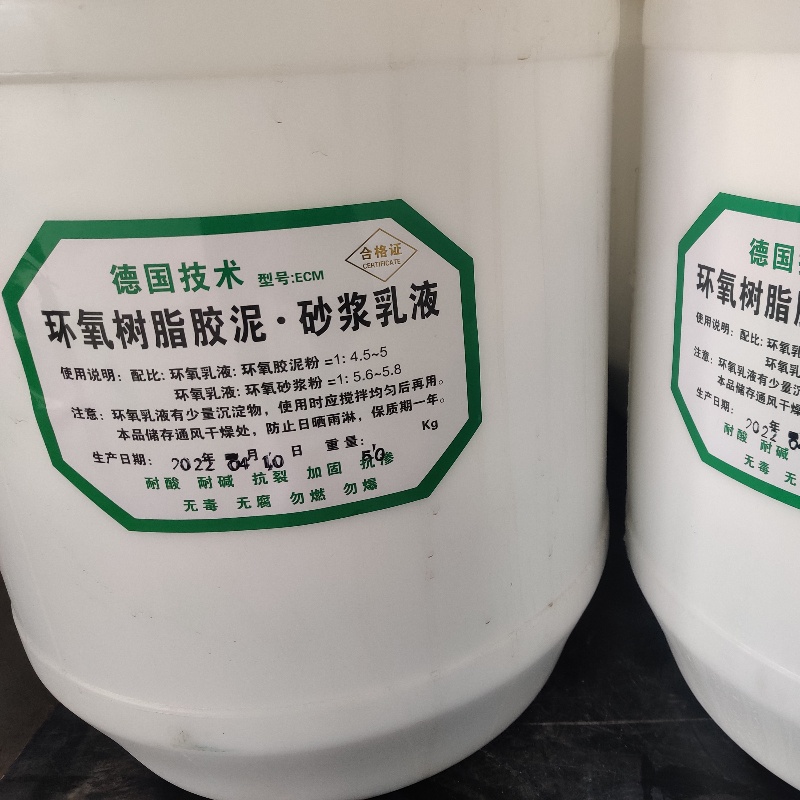 2、材料配制:應(yīng)將環(huán)氧乳液倒入容器內(nèi)攪拌2~3分鐘,并按一定比例加入粉料、攪拌均勻至泥狀即可使用(桶底少量沉淀物不影響施工效果)。